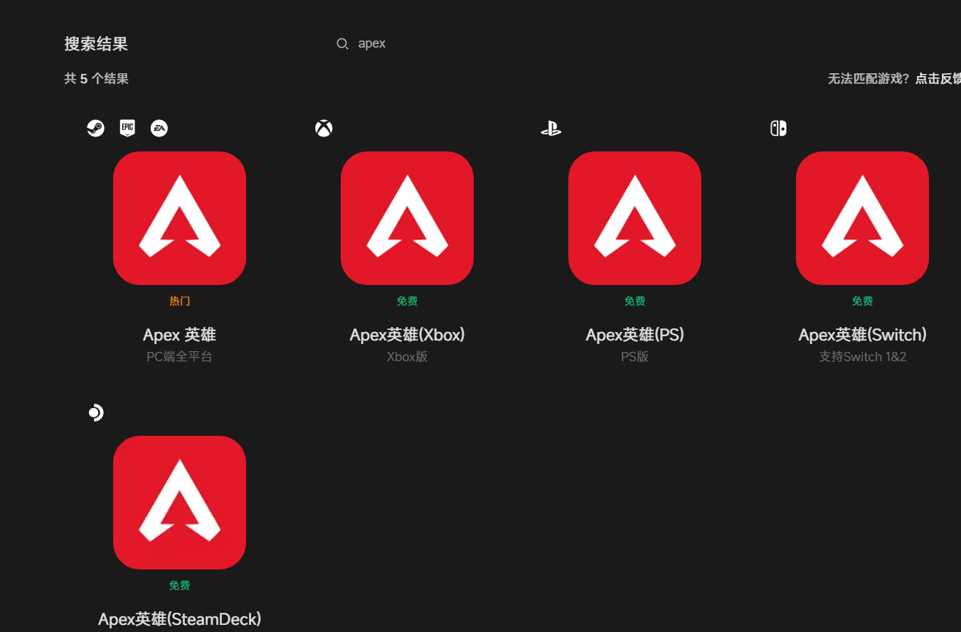 回到雷神加速器首页,在顶部搜索栏输入“Apex英雄”,根据自己的游戏版本选择对应区服;