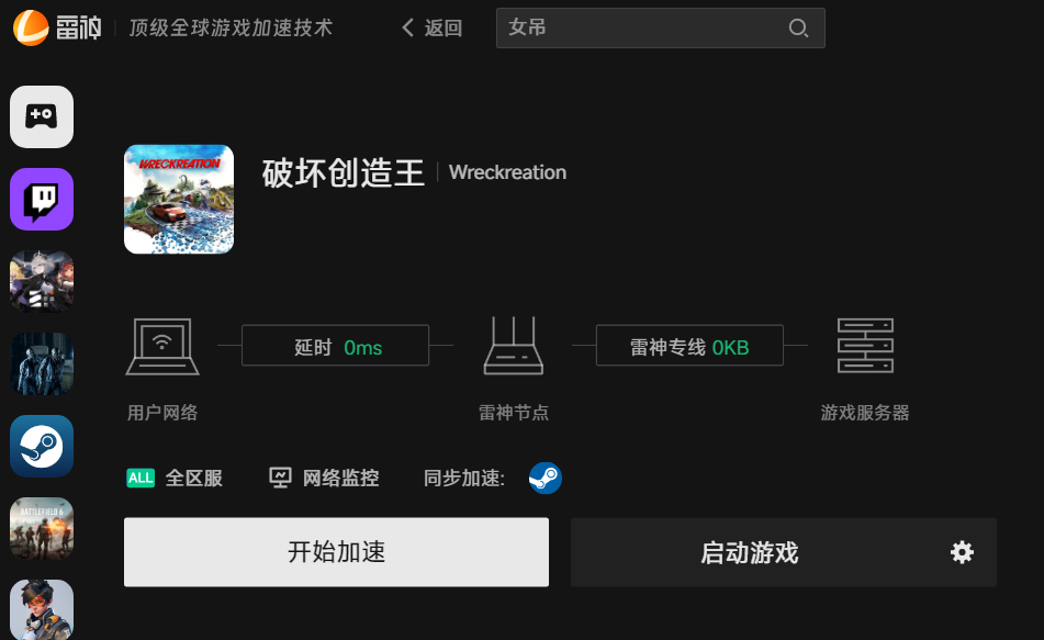 作为行业头部游戏工具品牌,雷神加速器专网加速《Wreckreation》,一键优化游戏服务器网络质量,有效降低网络延迟,减少卡顿掉线,全程提供流畅稳定的联机游戏体验,有效率高达99%。