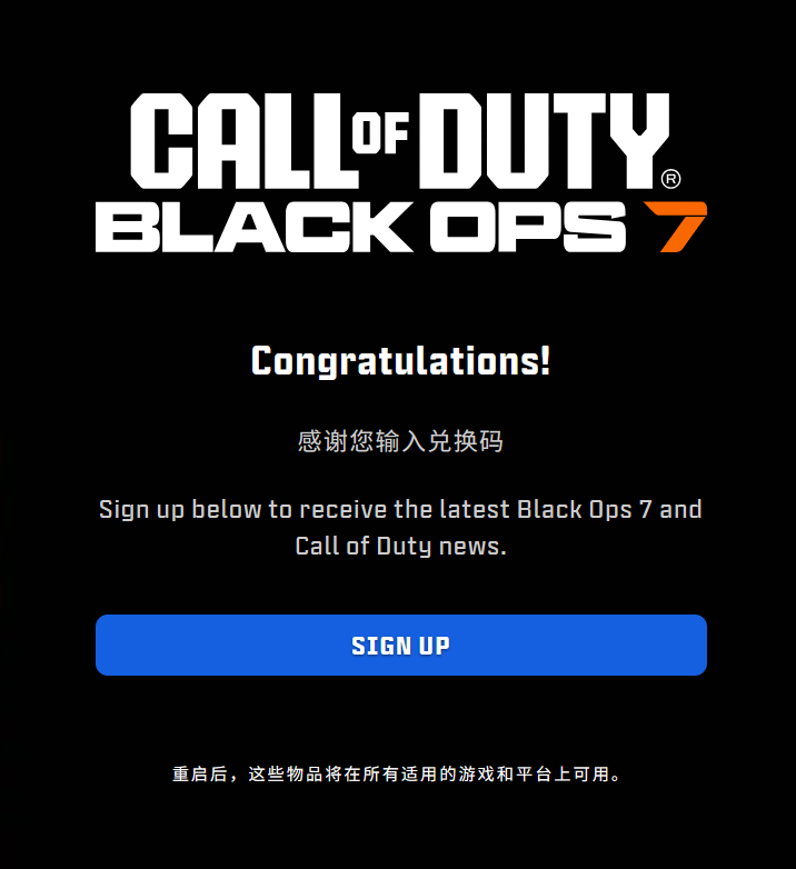 注意:系统发放对应平台激活码存在延迟,如在动视官网兑换后,未能在邮箱收到对应平台激活码邮件,请耐心等待!