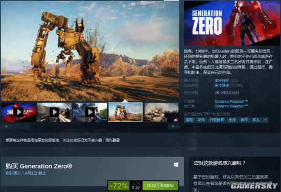 《零世代》折后价为22元,是该作的新史低价,优惠活动截止日期为6月1日。