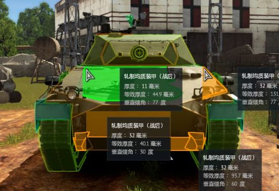 如图,不出所料地,正面防御也与轻型坦克是一个水平。