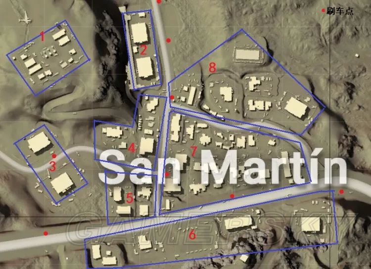 1.烂尾楼区:这个着落点很受玩家欢迎,那里有公认的富庶的山上烂尾楼。一般会有两三支队伍在这里登陆,会有一两个高级材料或者后卫。清完这一点,就可以下山直接打到2点和3点,很方便。