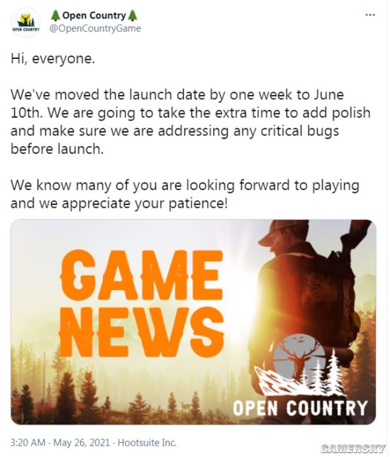 《辽阔旷野》这款狩猎冒险游戏在发售之前官方表示发售日期延期发售。官方给出的原因是“需要在发售前利用这额外的时间来打磨游戏,并修复任何恶性bug”。和专注于游戏加速的雷神加速器一起了解具体内容!