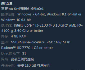 详细的配置如下图所示,玩家们可以参考的有最低配置要求:(图一)
