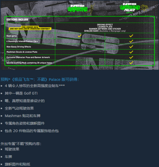 《极品飞车22:不羁》正式将于12月2日正式发售,预 购的玩家可提前3天,也就是在11月底游玩游戏,并可获得《极品飞车:不羁》专属物品。