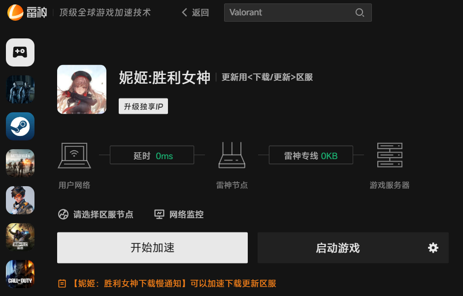 使用雷神加速器优化胜利女神:妮姬步骤教程