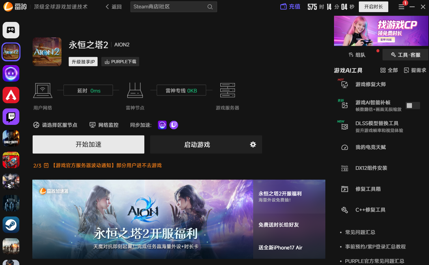 永恒之塔2PURPLE平台点击AION2下载跳转至网页?官方解决策略分享