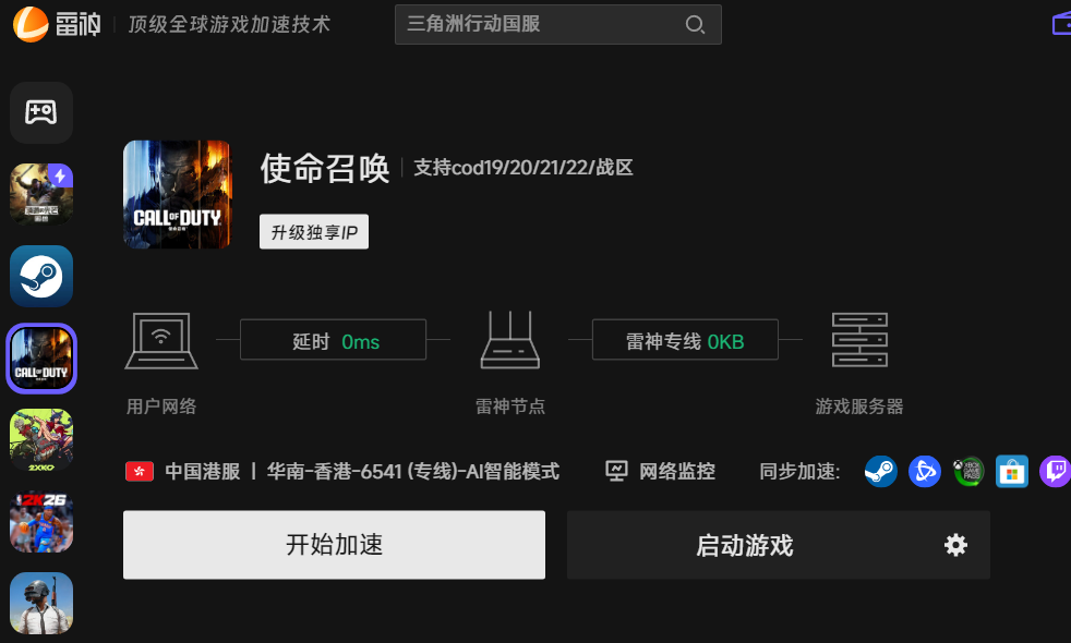 不过虽然账号绑定操作结束,但是玩家要想稳定游玩COD22,那雷神加速器就是必不可少的工具,雷神可以帮助玩家快速稳定服务器连接,降低延迟和丢包,解决游玩过程中的延迟、丢包、跳ping。直接打开雷神加速器,搜索使命召唤:黑色行动7开启加速,改善优化网络,即可解决网络异常问题。