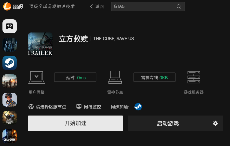 返回客户端首页,在顶部搜索栏输入“THE CUBE SAVE US”,根据自身游玩的区服版本选择对应选项,点击“开始加速”,等待优化完成后,启动游戏即可畅享丝滑流畅的THE CUBE SAVE US体验。