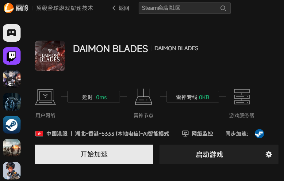 网络原因导致的DAIMON BLADES延迟高问题,可以使用专门的游戏网络优化工具-雷神加速器,进行快速有效解决。