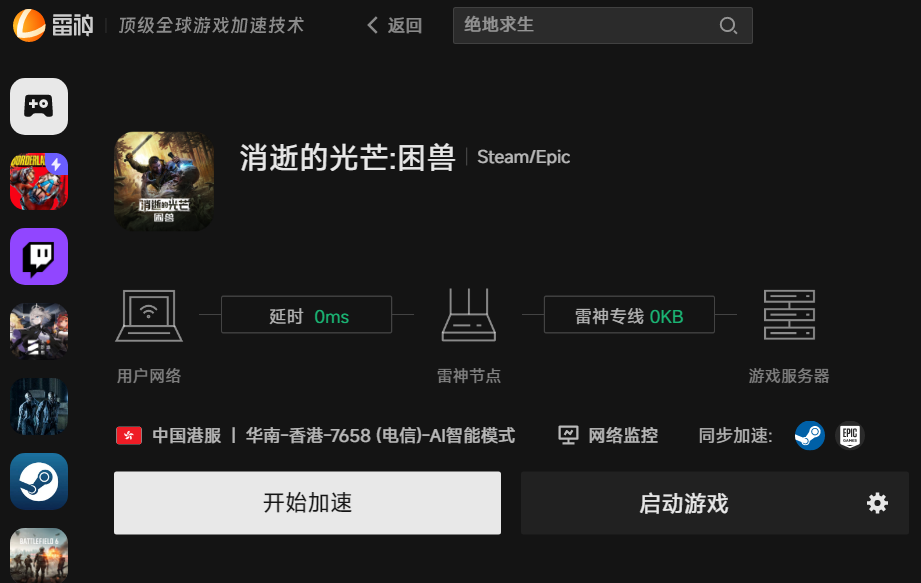 雷神加速器针对消逝的光芒:困兽专项优化了网络路径,快速稳定连接游戏服务器,有效解决进不去、黑屏、崩溃问题。