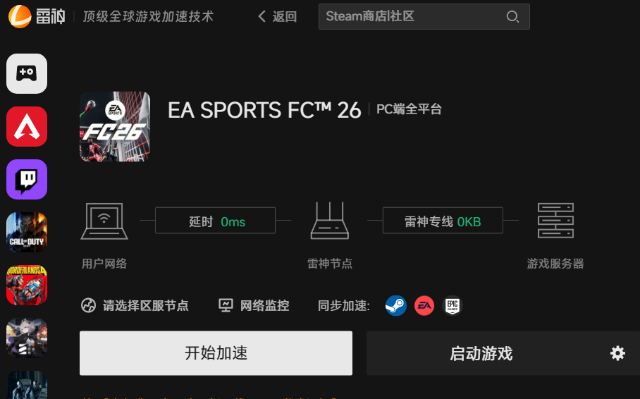 账号注册及游玩过程中,遇到账号注册失败、无法加载注册页面、注册时验证码加载超时等网络问题,多因本地网络与EA服务器连接不稳定、跨区域网络延迟过高导致。此时可以使用专门的游戏网络优化工具-雷神加速器快速解决。