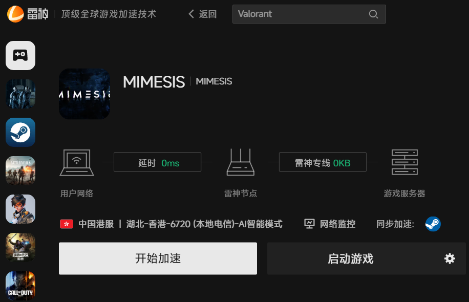 网络原因导致的迷魅狩猎/MIMESIS联机异常问题,可以使用专门的游戏网络优化工具-雷神加速器,进行快速有效解决。