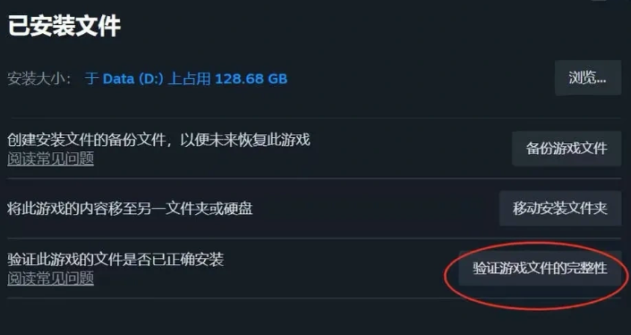点击 “验证游戏文件的完整性”,平台会自动检查并修复损坏或缺失的文件;