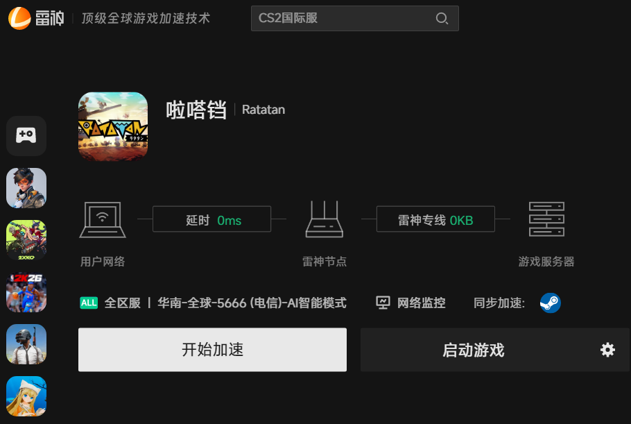 雷神加速器针对Ratatan优化了网络路径,通过2W+条电竞赛事级专线智能匹配最优连接,降低延迟的同时稳定服务器连接,减少因数据传输异常引发的网络问题,尤其适合玩海外服的玩家。