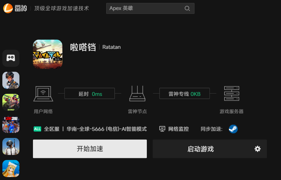 Steam玩家量身打造:针对Steam平台用户,雷神提供包括steam免费加速、steam一键下载、steam史低查询、steam跨区入库、steam自动挂卡在内的八大热门功能,商店/社区/创意工坊/市场/好友功能畅游无阻,若通过Steam启动啦嗒铛(Ratatan),还能同步优化平台连接。
