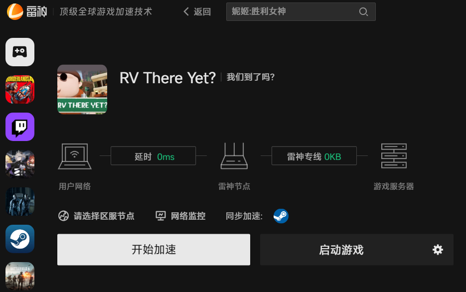 第三步:回到首页,顶部【搜索游戏】栏输入“我们到了吗/RV There Yet”,选择对应区服版本,完成加速优化,畅享丝滑流畅游戏体验。