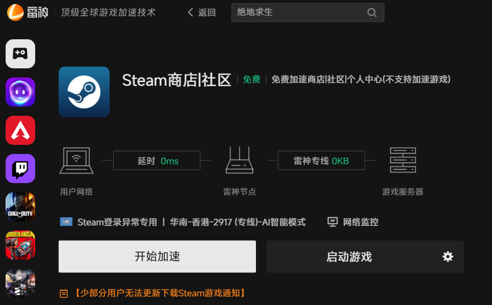 本文针对steam湖北区域网络崩溃、下载100%卡死问题,提供了3个有效解决办法。而对于多数由网络质量差导致的steam湖北区域网络崩溃、下载100%卡死问题,雷神加速器是更高效的解决方案。其提供的免费专线加速、超全区服支持及实用工具,能99%有效解决相关问题,且支持多设备使用,操作便捷。若在使用Steam时遭遇网络问题,不妨借助雷神加速器优化网络,快速恢复流畅体验。